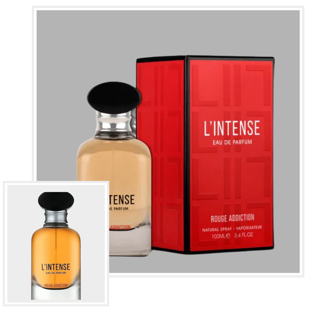 L'Intense Rouge Addiction marki Maison Alhambra to kwiatowe perfumy dla kobiet. Nutami głowy są Imbir i Czerwona pomarańcza; nutami serca są Tuberoza, Jaśmin i Liść pimentu; nutami bazy są Paczula, Drzewo sandałowe i Wetyweria.