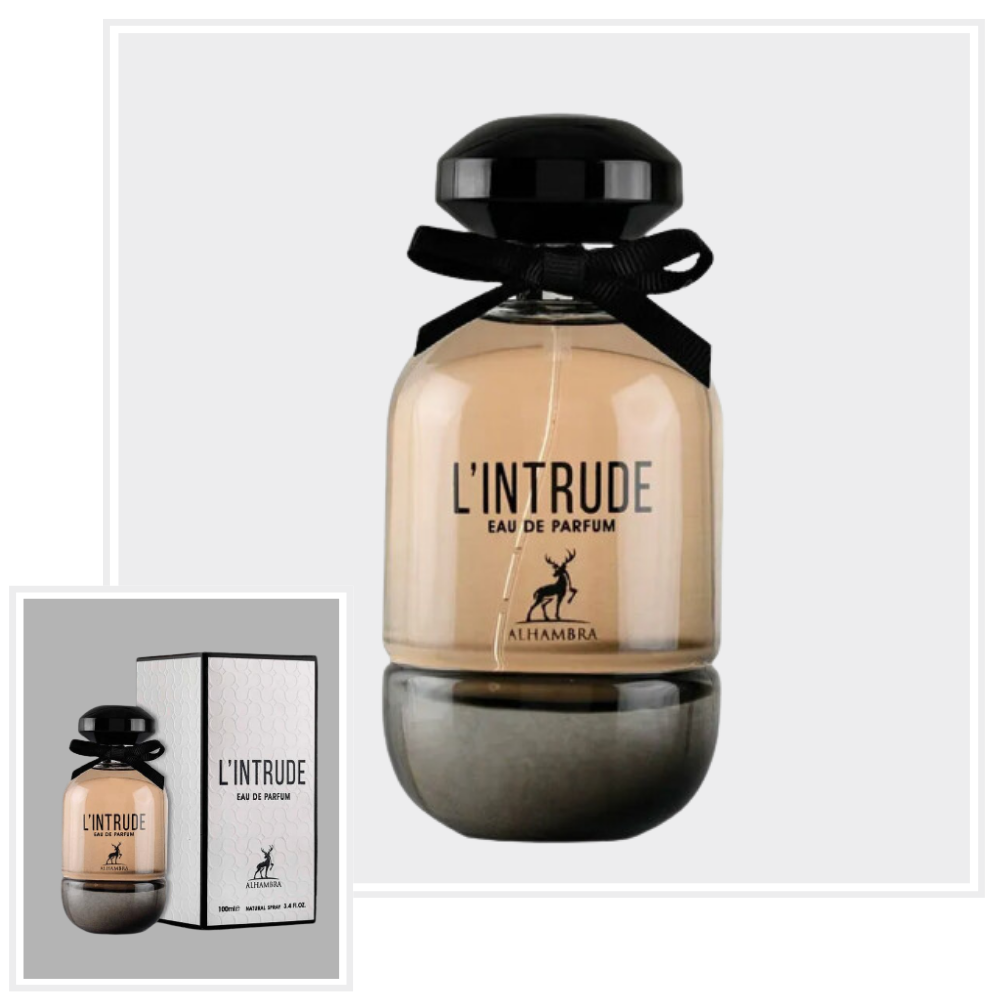 L'Intrude marki Maison Alhambra to kwiatowe perfumy dla kobiet. Nutami głowy są Gruszka i Bergamotka; nutami serca są Tuberoza, Kwiat pomarańczy i Jaśmin wielkolistny; nutami bazy są Ambroksan, Paczula, Wanilia i Wetyweria.