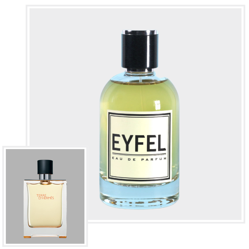 Wyrafinowana woda perfumowana Eyfel inspirowana zapachem Terre d'Hermès opowiada historię relacji człowieka z ziemią, odsłaniając jego cichy i harmonijny dialog z naturą i żywiołami. Terre d'Hermès to perfumy, które przypominają o pochodzeniu człowieka i o źródłach jego twórczej mocy.