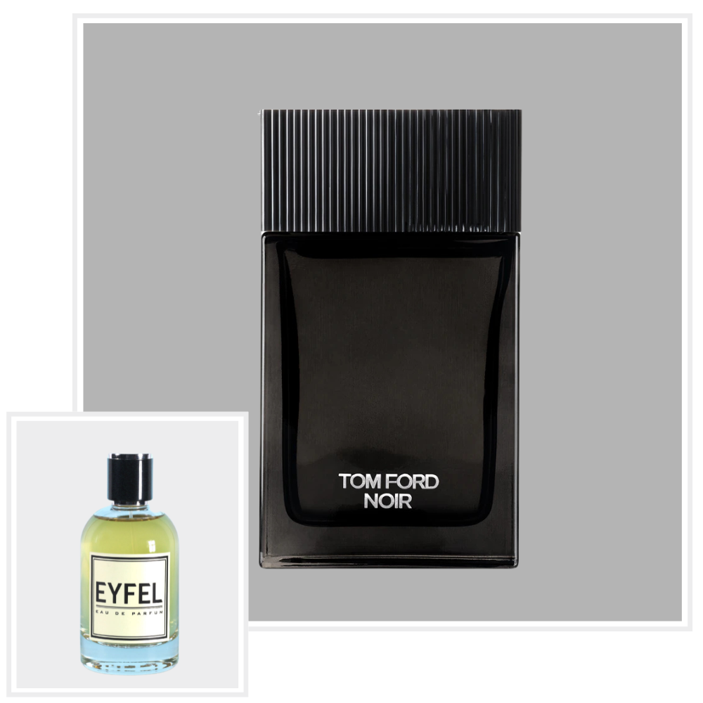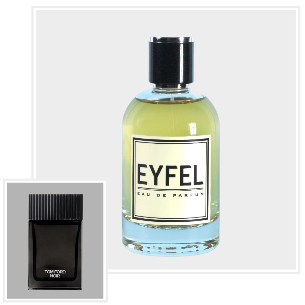 Woda perfumowana firmy Eyfel inspirowana zapachem Tom Ford Noir wyraża kontrast między wyglądem a charakterem mężczyzny. Pierwsza część przyjmuje postać stylowego dżentelmena, który prezentuje się otoczeniu. Niewiele osób zna drugą – uosabia bowiem cielesną zmysłowość, kryjącą się pod idealnie dopasowanym garniturem.