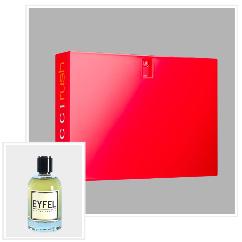 Impulsywna i nieodparta – dokładnie jak miłość od pierwszego wejrzenia. Taka jest woda perfumowana Eyfel inspirowana zapachem Gucci Rush. Wystarczy raz poczuć jej zapach, by dać się porwać ekstatycznej radości i zachwytowi, gdy niewyobrażalne staje się możliwe.