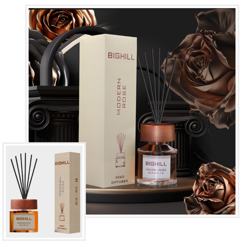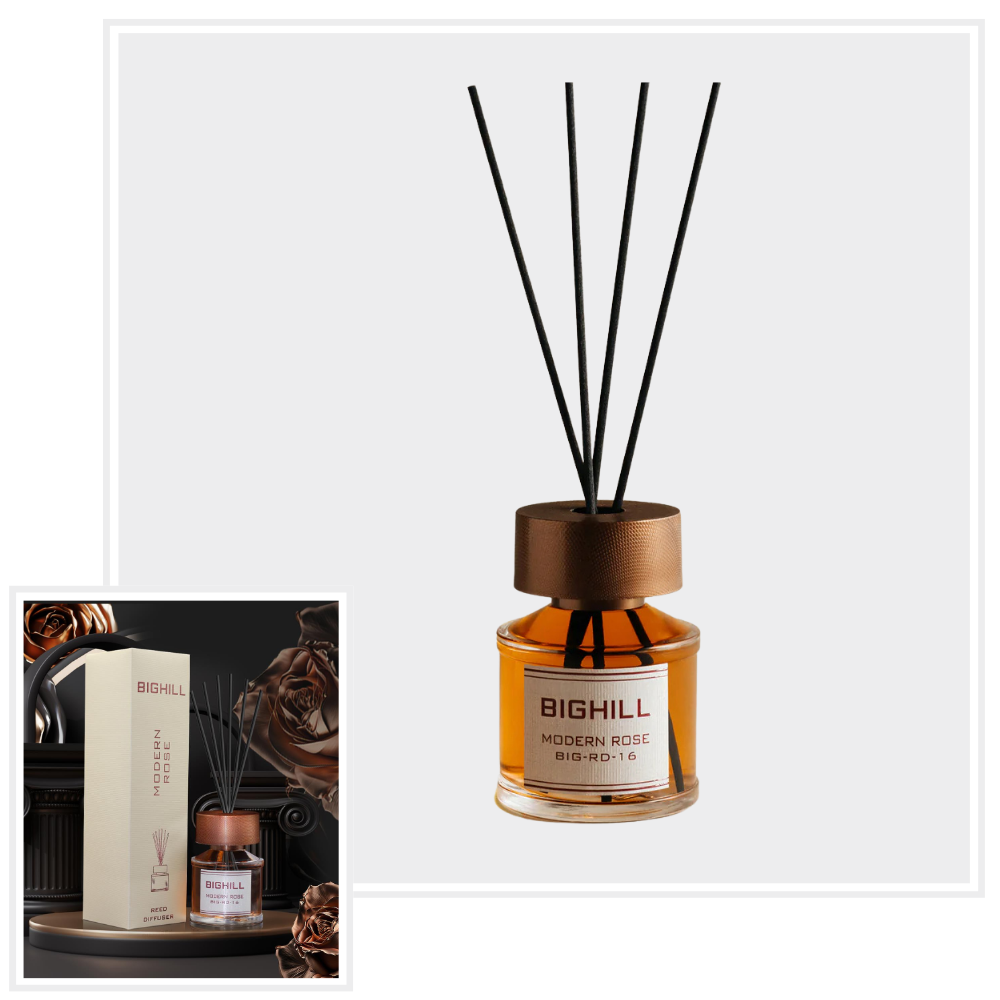 MODERN ROSE BIGHILL - tworzy romantyczny nastrój zmieniając klimat każdego wnętrza. Zapach otwiera się geranium i czerwoną różą, aby finalnie przejść w słodkie akcenty miodu i delikatne nuty drzewne.